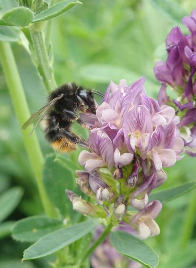 Inagro test op een perceel luzerne langs de Frontzate of een aangepast maaischema een voordeel is voor bestuivers , en hoe groot de impact daarvan op de oogst is. “Luzerne wordt normaal gemaaid net op het moment dat de planten in bloei komen”, vertelt Thomas Van Loo van Inagro. “Door op het perceel bij elke maaibeurt telkens een nieuwe strook niet te maaien, krijgt een deel van het perceel de kans om het hele seizoen te bloeien en voedsel voor bijen en andere insecten te leveren. We merken bovendien dat de interesse in de teelt stijgt bij landbouwers omdat ze door de diepe wortels weinig last heeft van droogte en stevig door blijkt te groeien op momenten waar de meer klassieke voedergewassen zoals mais en raaigras het moeilijk hebben”.