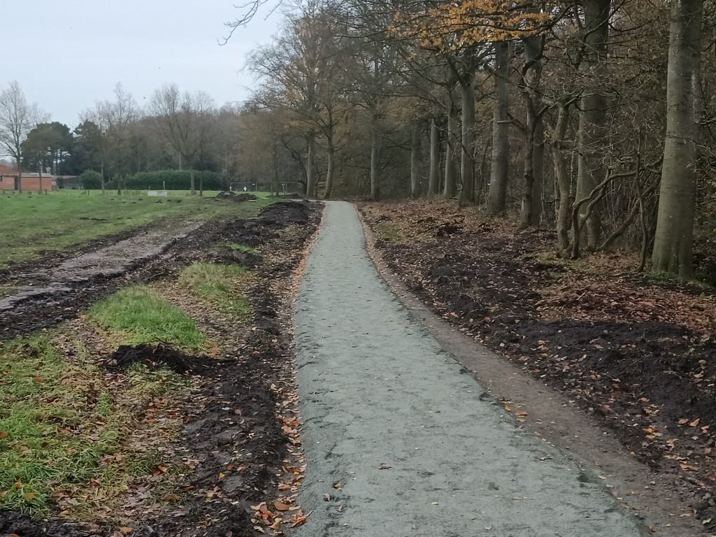 Aanleg van het beleefpad en de kijkheuvel waarop nog een beleefelement zal komen in het voorjaar.