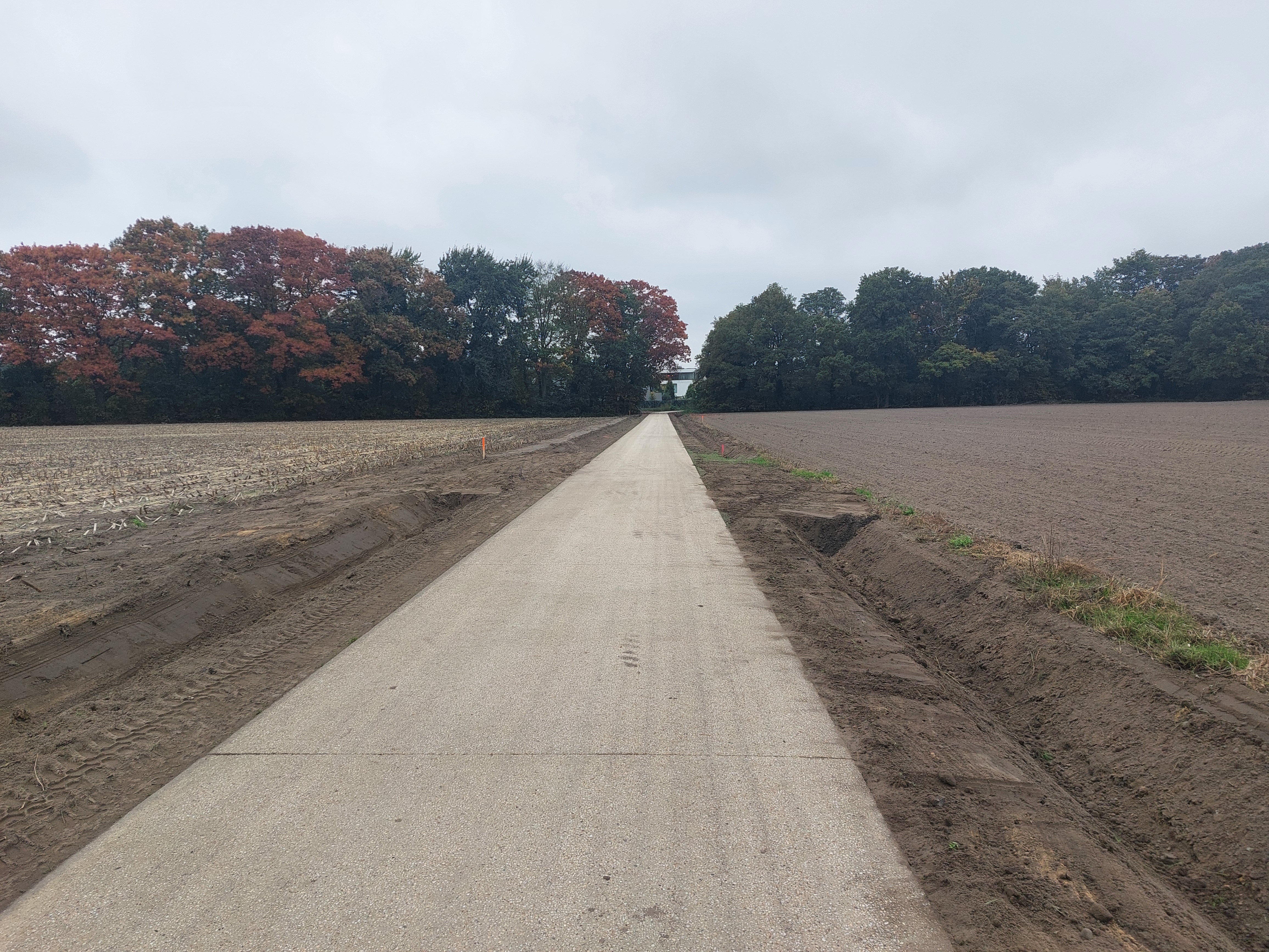 Na volledige uitharding werden de bermen aangevuld en de grachten gegraven. Deze werkzaamheden vormden de laatste stap in de afwerking, zodat het fietspad nu op een veilige en kwalitatieve manier kan worden opengesteld voor gebruik