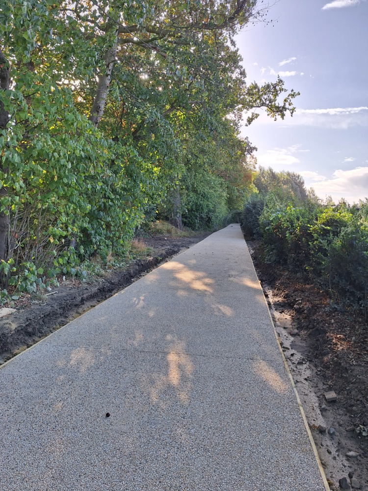 Het pad is 687 meter lang en 3 meter breed, en aangelegd in uitgewassen beton met een bruine natuurlijke tint. Op die manier vormt het een nieuwe fiets- en wandelverbinding in het groen tussen de Putstraat en de Kortrijksesteenweg in Sint-Denijs-Westrem. Het nieuwe pad zorgt ervoor dat recreatief verkeer, maar ook functioneel verkeer veiliger wordt in deze regio.